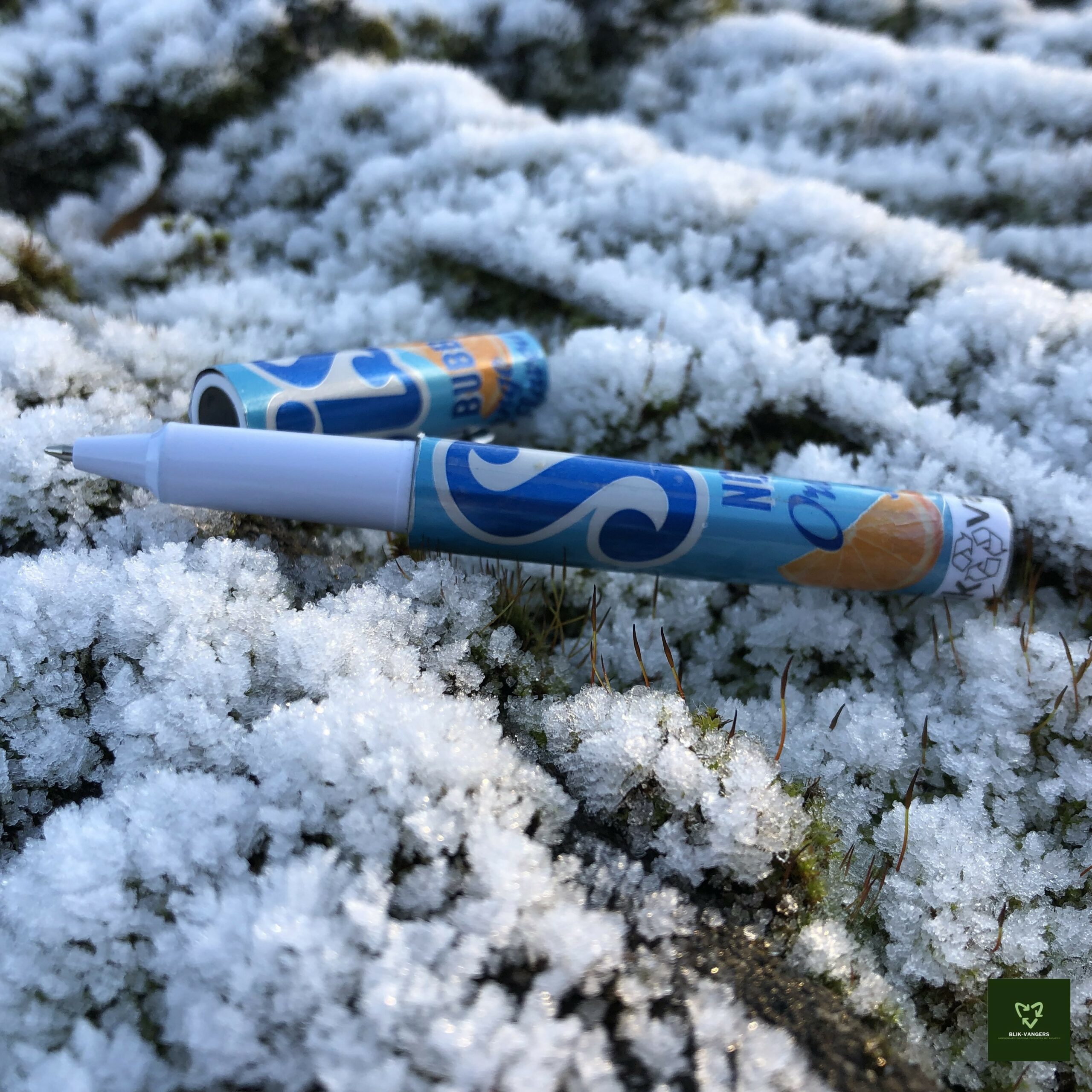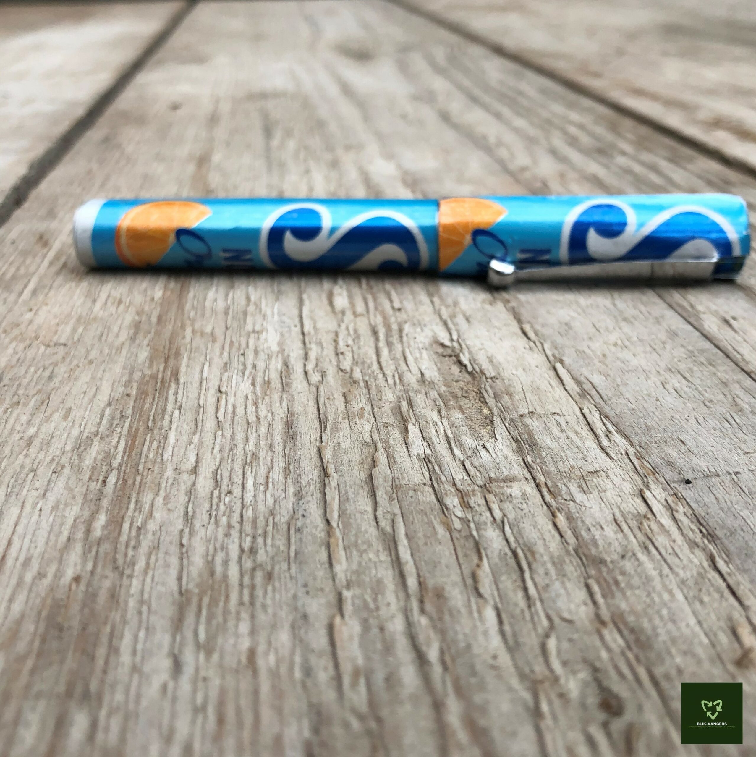 De Sisi pen is een duurzame optie voor iedereen die op zoek is naar een stijlvolle en milieuvriendelijke schrijfervaring. Sisi blikjes zijn al lang een populaire frisdrankverpakking. Maar wat gebeurt er met deze blikjes nadat ze zijn gebruikt? In plaats van ze weg te gooien, upcyclet Blikvangers ze tot unieke, handgemaakte pennen! De pen heeft een stevige dop en clip en is navulbaar, waardoor hij lang meegaat en bijdraagt aan het verminderen van afval. De kleuren van de pen zijn blauw, oranje en wit, met het logo van Sisi erop gedrukt, wat het een unieke uitstraling geeft.