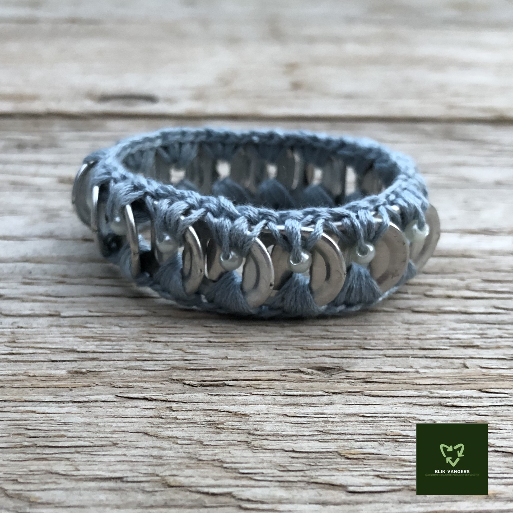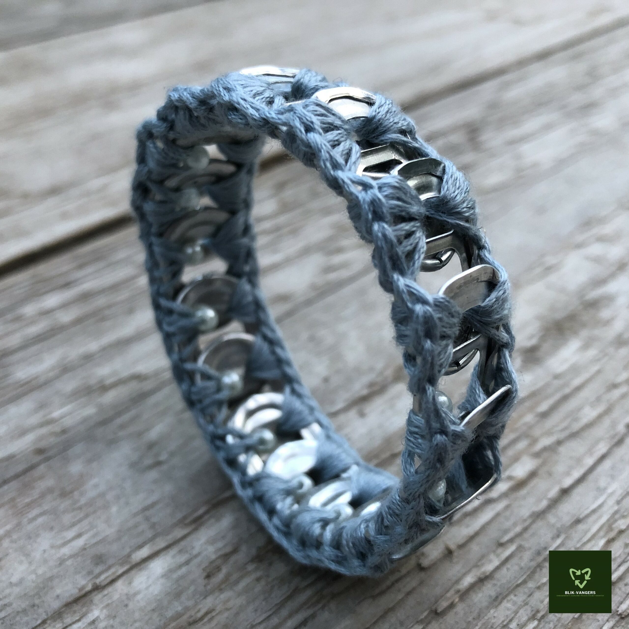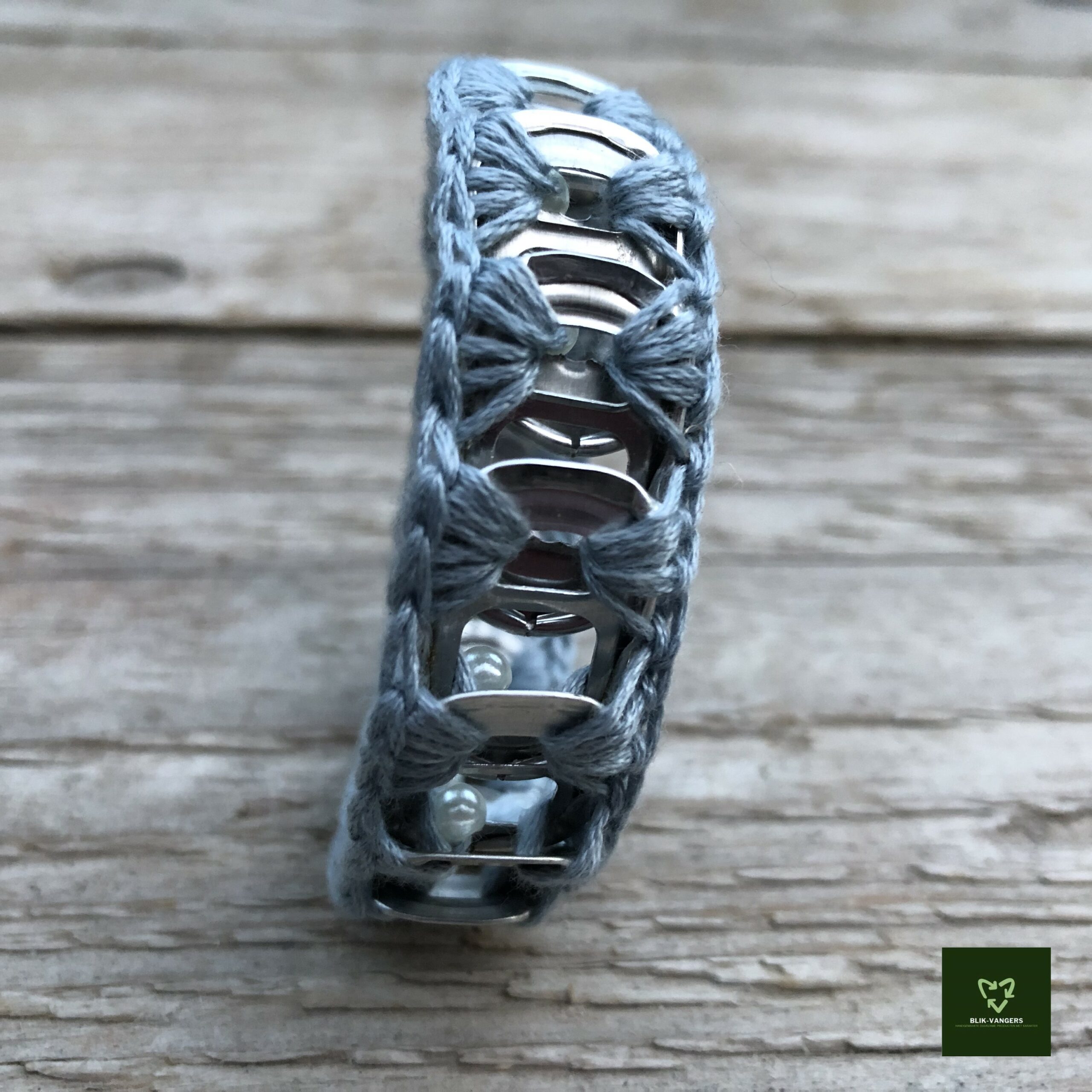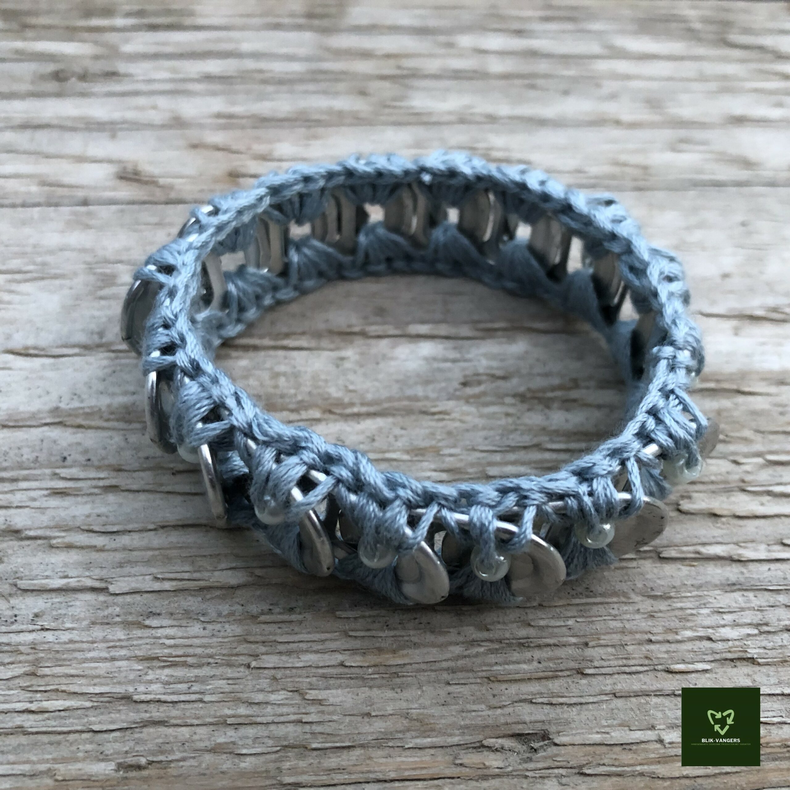 Deze zilver ijsblauwe bliklipjes armband maakt jouw outfit compleet. De armband van Blikvangers is elegant en trendy tegelijk! Het is een bijzonder en uniek sieraad door het gebruikte materiaal: ge-upcyclede bliklipjes die aan elkaar zijn gehaakt met een gerecycled garen. In het ijsblauwe garen zijn zilverwitte parelkraaltjes verwerkt. De treklipjes zijn afkomstig van lege bier- of frisdrankblikjes.