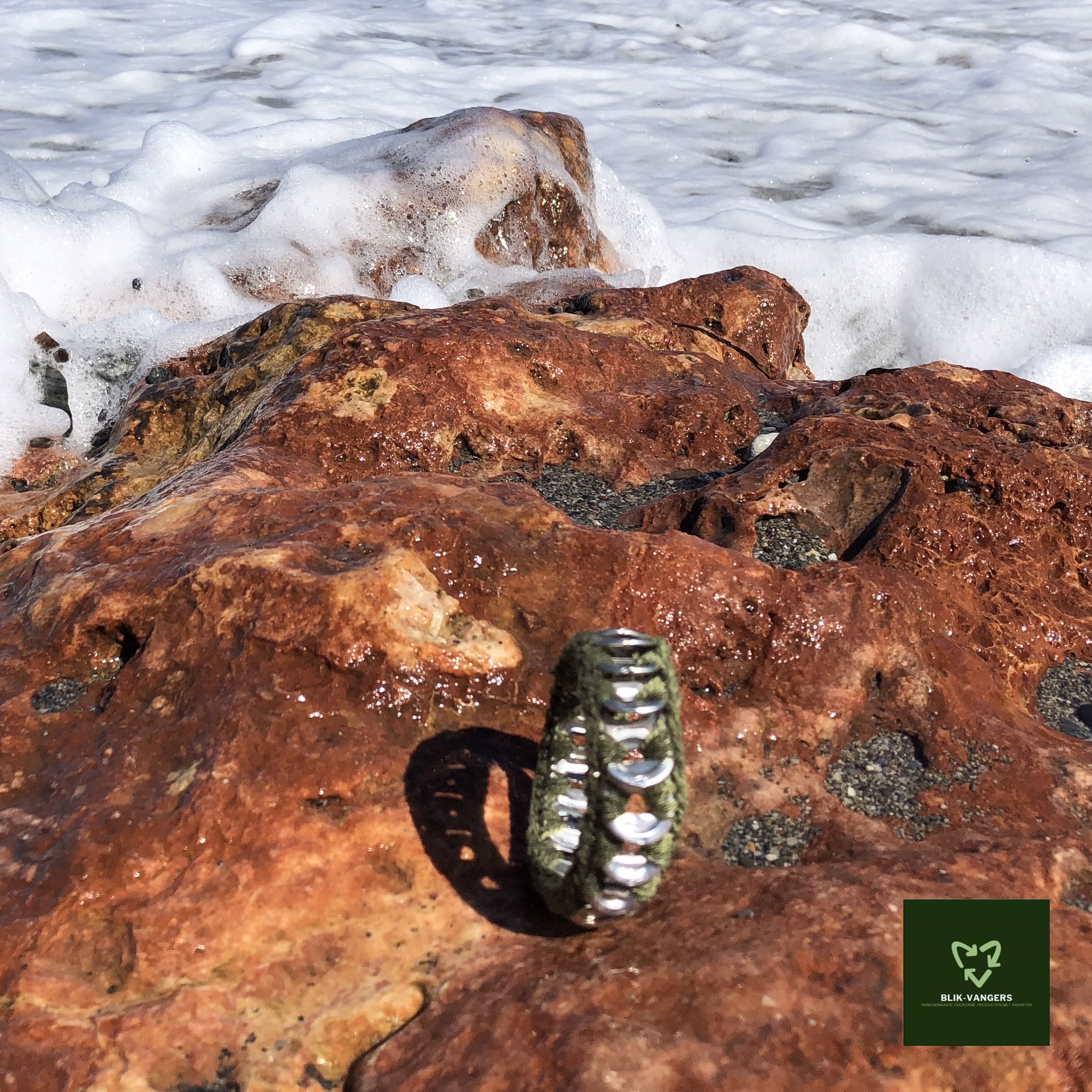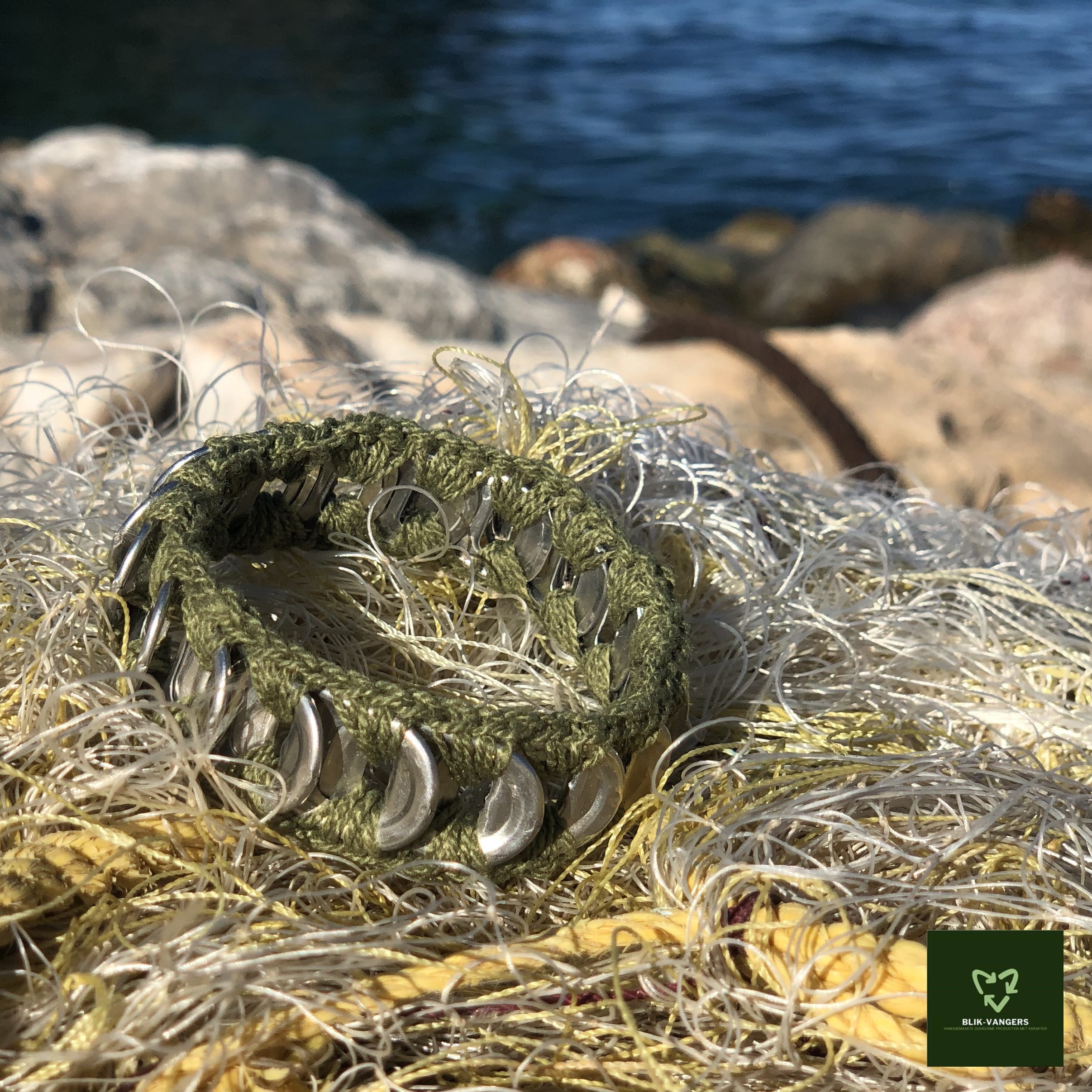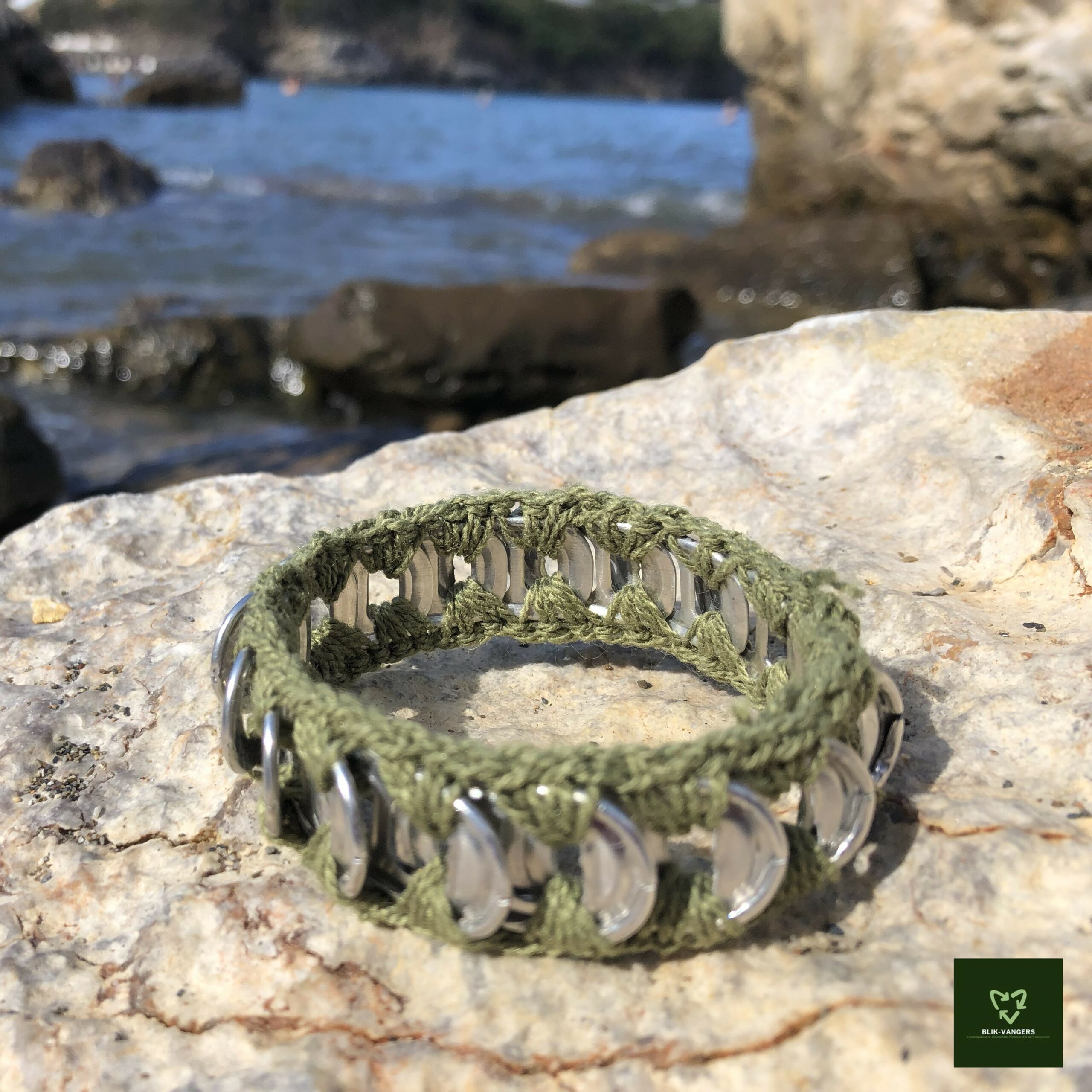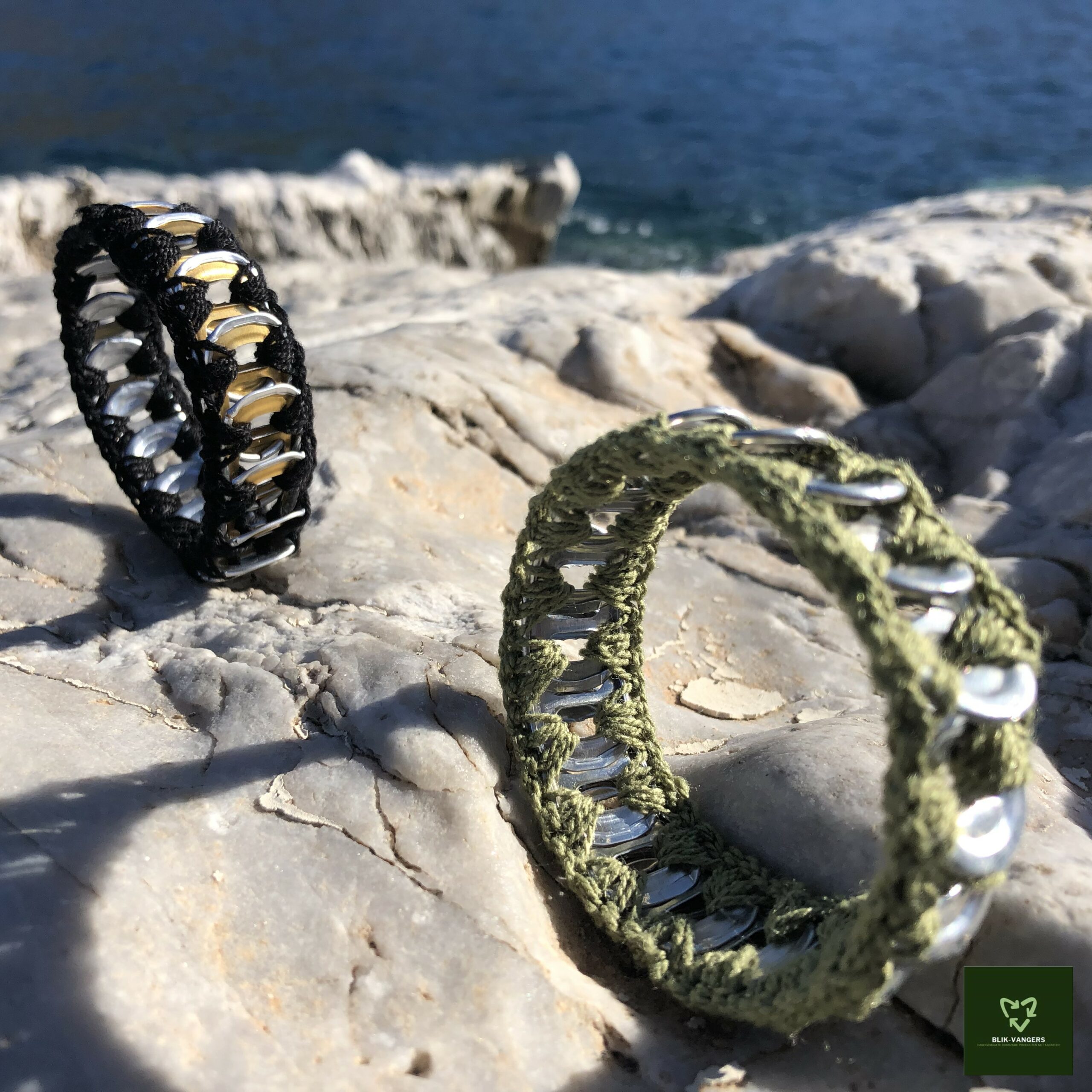 Deze zilver legergroene bliklipjes armband maakt jouw outfit compleet. De armband van Blik♻vangers is duurzaam en stoer tegelijk! Het is een bijzonder en uniek sieraad door het gebruikte materiaal: ge-upcyclede bliklipjes die aan elkaar zijn gehaakt met een gerecycled garen. De treklipjes zijn afkomstig van lege bier- of frisdrankblikjes.